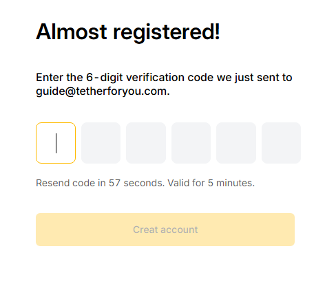 레퍼럴 코드에 tetherforyou가 보이지 않으신다면, 1번으로 돌아가 다시 한번 가입을 진행해 주세요.