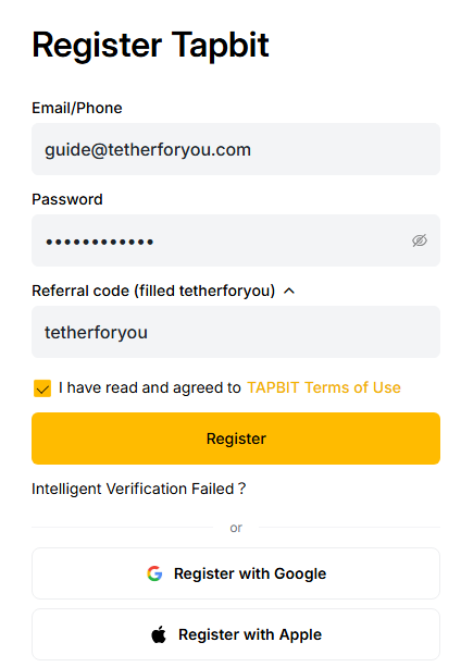 클릭 또는 테더포유 홈페이지를 통해 탭비트 가입 링크로 접속해 주세요.