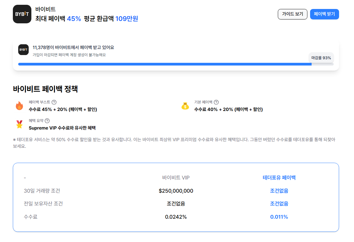 테더포유는 바이비트 Supreme VIP 등급과 유사한 혜택을 제공하고 있어요.
