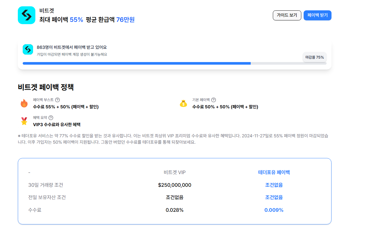 테더포유는 비트겟 VIP3등급과 유사한 혜택을 제공하고 있어요.