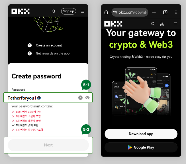 클릭 또는 테더포유 홈페이지를 통해 OKX 가입 링크로 접속해 주세요.