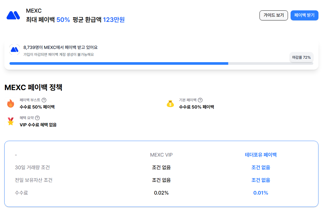 테더포유는 MEXC 거래 수수료의 최대 50%을 제공하고 있어요.
