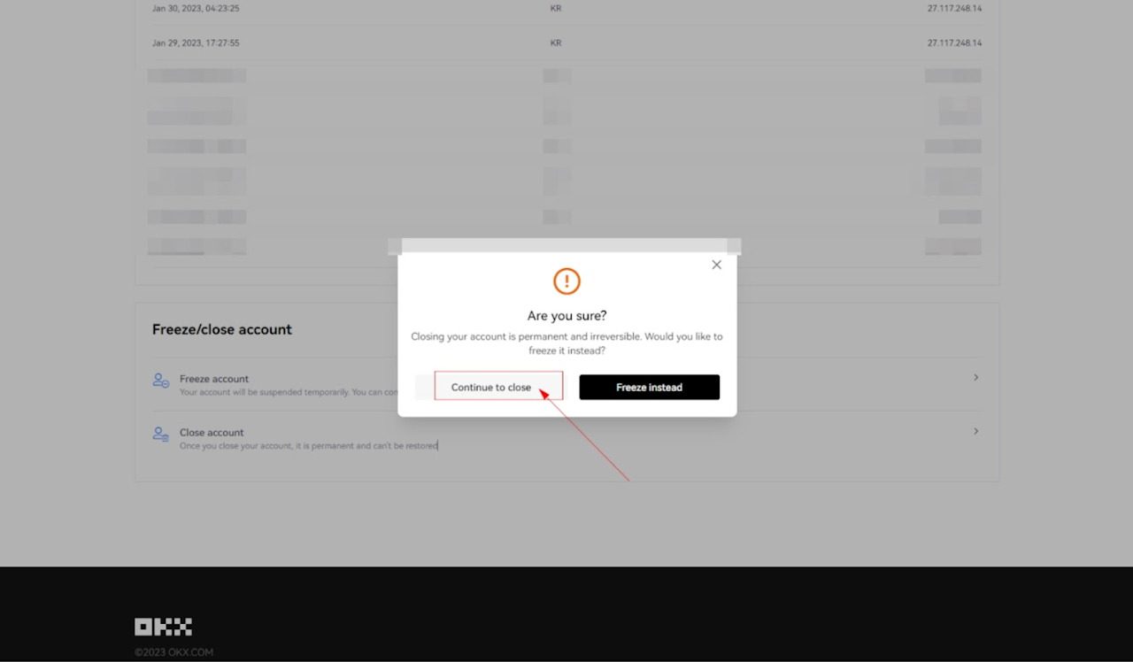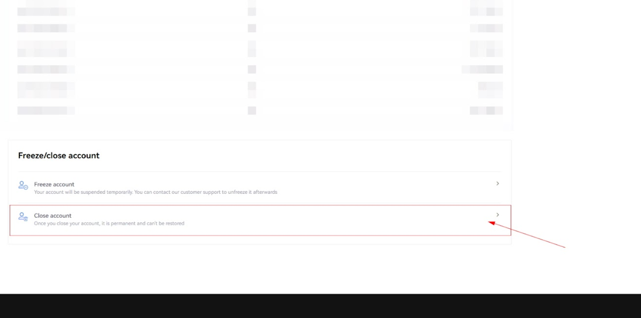 스크롤을 내려서 [Close Account] 부분을 클릭해주세요.
